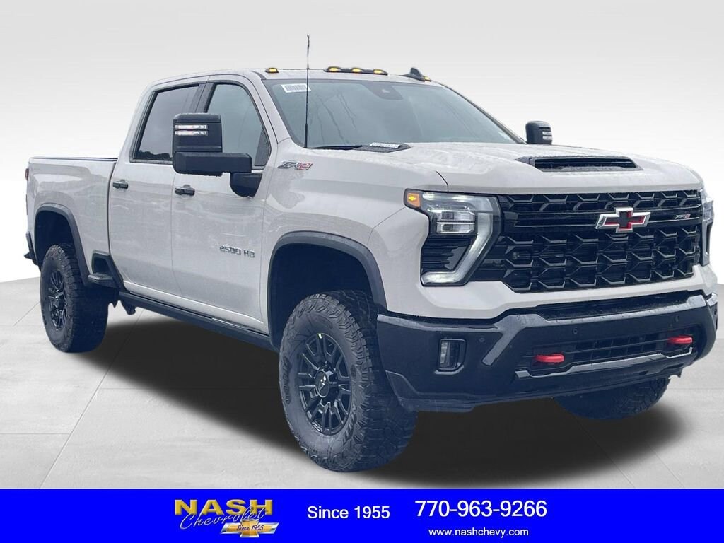 Priced below KBB Fair Purchase Price! White Sands 2026 Chevrolet Silverado 2500HD ZR2 4WD 10-Speed Automatic Duramax 6.6L V8 Turbodiesel 10-Speed Automatic, 4WD, Jet Black/Graystone Leather.